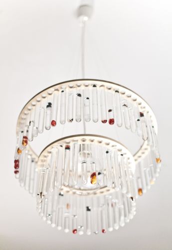Pani Jurek, „Maria S.C.” żyrandol, 2014, szklane probówki, 110 cm x 47 cm, estymacja 800-1 000 zł / Pani Jurek, ‟Maria S.C.” chandelier, 2014, chemistry test tubes, 110 cm x 47 cm (dia), estimate 800-1 000 zł