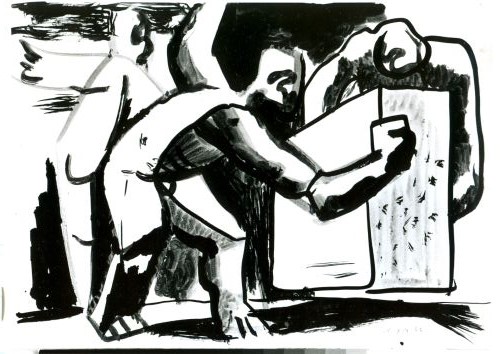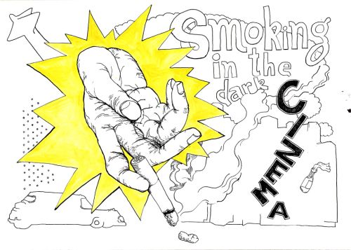 Jarodzki Paweł, Bez tytułu (Smoking in the Dark Cinema), 2014, tusz, akryl, papier, 50 cm x 70 cm, estymacja 5 000-5 500 zł / Paweł Jarodzki, Untitled (Smoking in the Dark Cinema), 2014, ink, acrylic, paper, 50 cm x 70 cm, estimate 5 000-5 500 zł