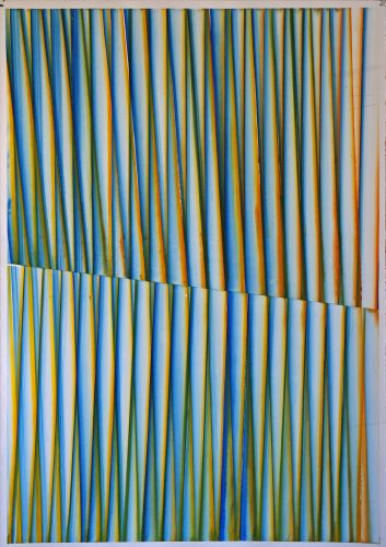 Podlaska Dorota, Bez tytułu, z cyklu: „Tam i z powrotem”, 2004, akryl, płótno, 18 cm x 100 cm, estymacja 3 500-4 500 zł / Dorota Podlaska, Untitled, from the series ‟Back and Forth,” 2004, acrylic, canvas, 18 cm x 100 cm, estimate 3 500-4 500 zł