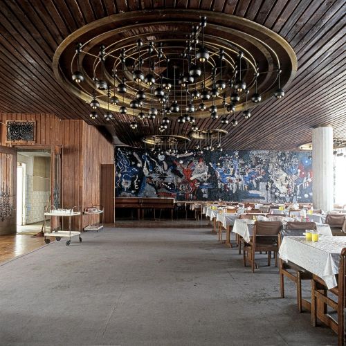 Grospierre Nicolas, „Jadalnia, Dom Kompozytora” (Borjomi, Gruzja), 2006, Lambda Print, drewno, 50 cm x 50 cm, estymacja 4 000-6 000 zł / Nicolas Grospierre, ‟Dining room, Composer’s House” (Borjomi, Giorgia), 2006, Lambda Print, wood, 50 cm x 50 cm, estimate 4 000-6 000 zł