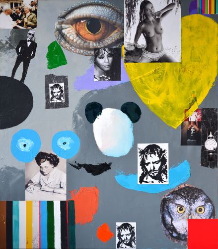 Matecki Przemysław, Bez tytułu, 2014, olej, papier, płótno, folia aluminiowa, 132 cm x 115 cm, estymacja 20 000-26 000 zł / Przemysław Matecki, Untitled, 2014, oil, paper, canvas, aluminium foil, 132 cm x 115 cm, estimate 20 000-26 000 zł