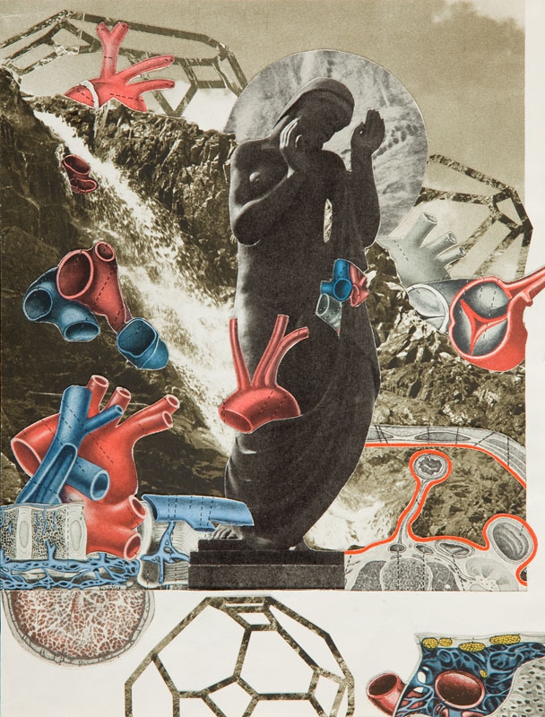 rysunek z użyciem kalki, collage/papier , 48 x 68 cm
