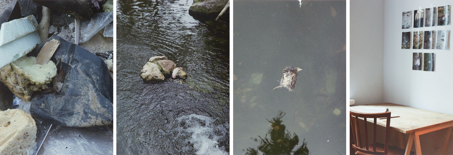 wydruk pigmentowy/papier archiwalny matowy, praca składa się ze zdjęcia w formacie 120x80 cm pt. Biurko i trzech mniejszych, w formatach 24x30 cm: Ptak, Ptak2 i Szczur