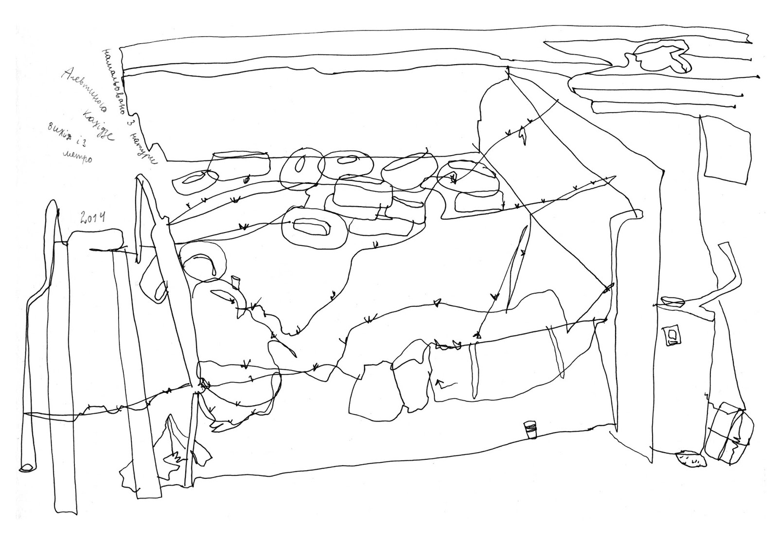 Alevtina Kakhidze: Bez tytułu, z serii: 'A barricade drawn from spot, Kiev', 2014 r.