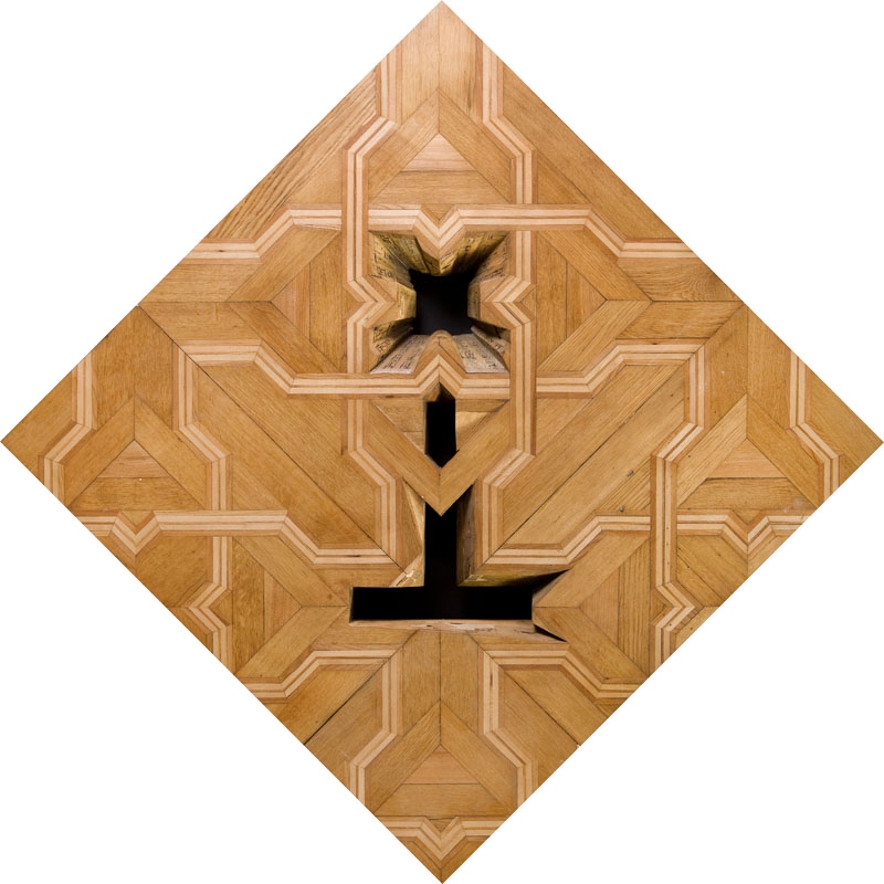 płaskorzeźba/drewno inkrustowane, 115 x 115 cm