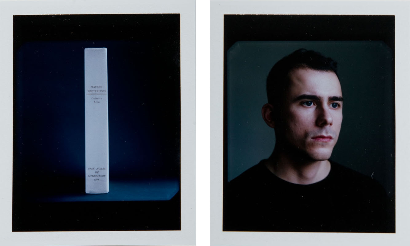 Mateusz Zdzisław Choróbski: Portret & l'oiseau bleu, dyptyk, 2015 r. polaroid/papier fotograficzny, 10,7 x 8,5 cm (wymiar jednego zdjęcia)