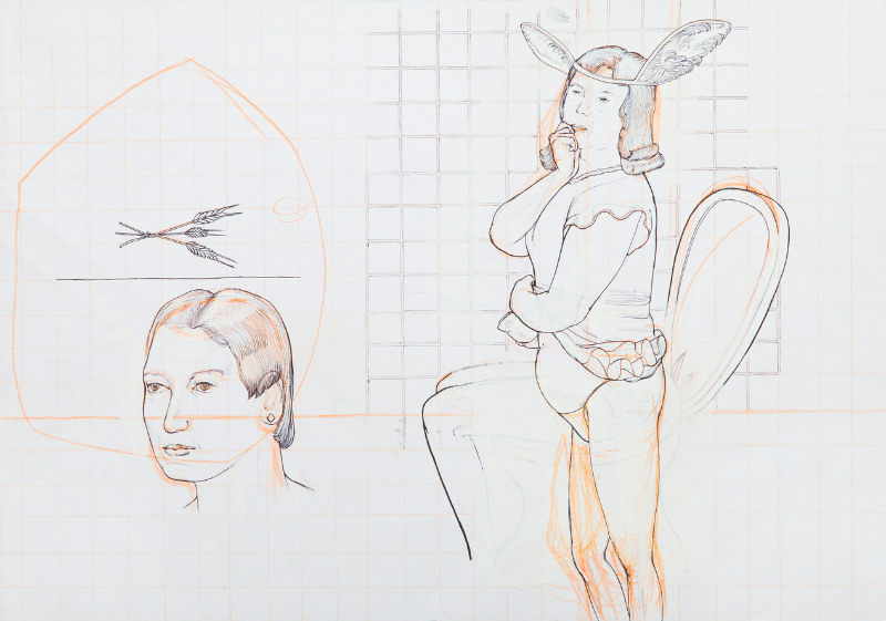 długopis, gwasz, kredka/papier, 35 x 50 cm