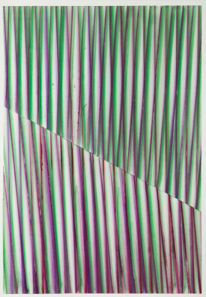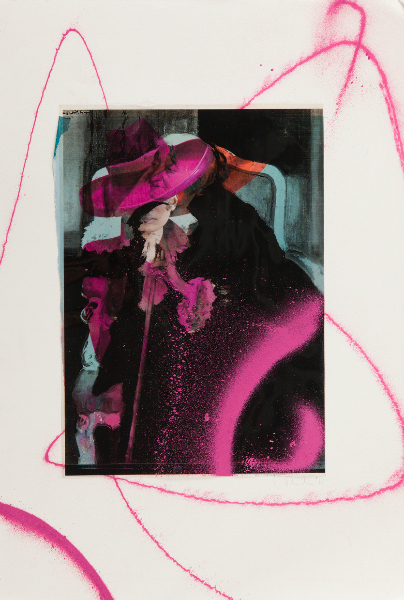 wydruk tuszowy, folia, spray, farba olejna/papier, 48 x 33 cm