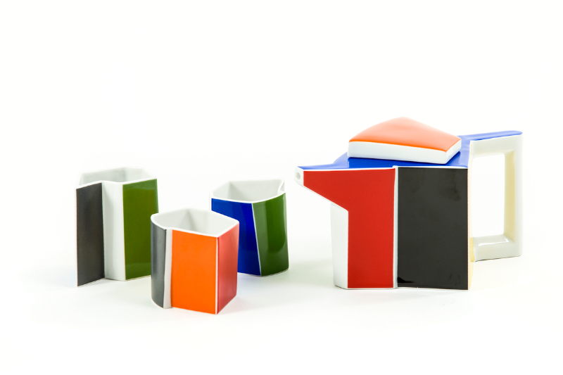 porcelana, kalka ceramiczna, czajnik 11 x 19 x 10 cm, 450 ml; kubek 6 × 6,5 cm, 100ml; mlecznik 8 × 6,5 cm, 100ml