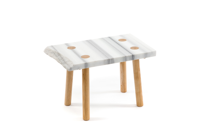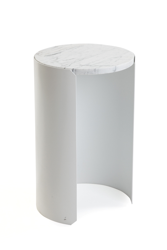 30.Paweł Grobelny - Stolik In-Quatro, prototyp 2014 r. stal malowana proszkowo, blat z białego marmuru 52 x 32,5 x 32,5 cm cena wywoławcza: 1 200 zł estymacja: 2 000 – 4 000 zł