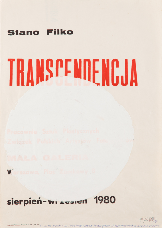 53.Stanislav Filko - 5th Dimension White Ontologic Transcendence - Devoured Everything 1980/1995 r. farba lateksowa, długopis, druk offsetowy, 60,7 x 42,7 cm sygnowany u dołu: 'FYLKO 1980' cena wywoławcza: 5 000 zł estymacja: 9 000 – 12 000 zł