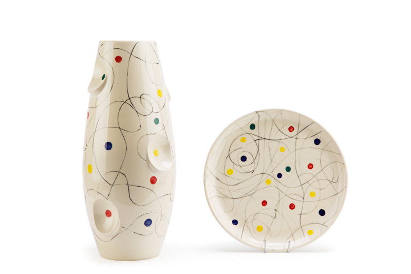 35.Malwina Konopacka - Z serii "La cite", wazon i talerz OKO 2017 r. ceramika szlachetna, wazon: 42 x 19 cm, talerz: średnica 30 cm sygnowany na podstawie: '[pieczęć autorska] | No 1/I La Cite | MK | WZÓR' cena wywoławcza: 1 400 zł estymacja: 2 000 – 3 000 zł