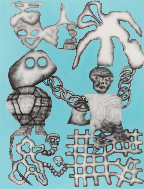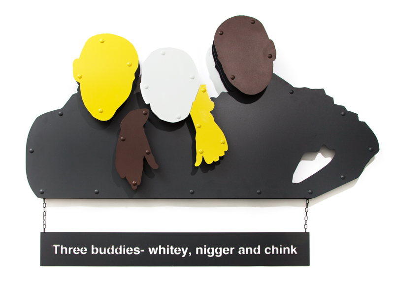 25.Arkadiusz Wolski - Bez tytułu (3 kumpli) 2017 r. aluminium malowane, 90 x 130 cm sygnowany i datowany na odwrociu: 'Arek Wolski | 2017' cena wywoławcza: 10 000 zł estymacja: 20 000 – 30 000 zł