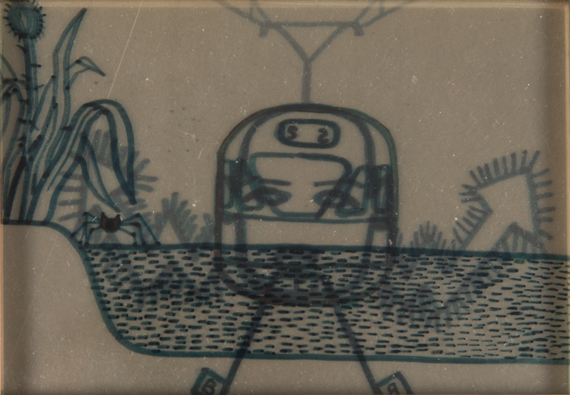 10.Wojciech Bąkowski - Rysunek z książki "WuEsBe - wiersze i rysunki" 2006 r. marker/folia transparentna, 7,5 x 10 cm sygnowany na odwrociu: 'WB 06' cena wywoławcza: 3 000 zł estymacja: 4 000 – 7 000 zł