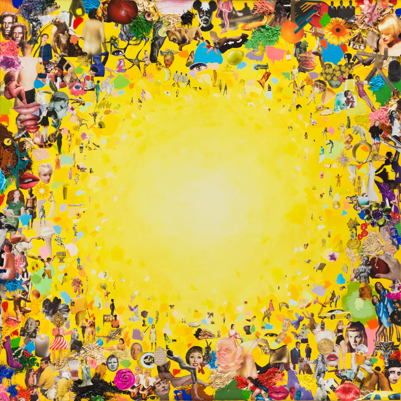 9.Przemysław Matecki - Bez tytułu (Słońce) 2016 r. olej, kolaż/płótno, 150 x 150 cm sygnowany i datowany na odwrociu: 'P. MATECKI | 2016' cena wywoławcza: 25 000 zł estymacja: 35 000 – 50 000 zł