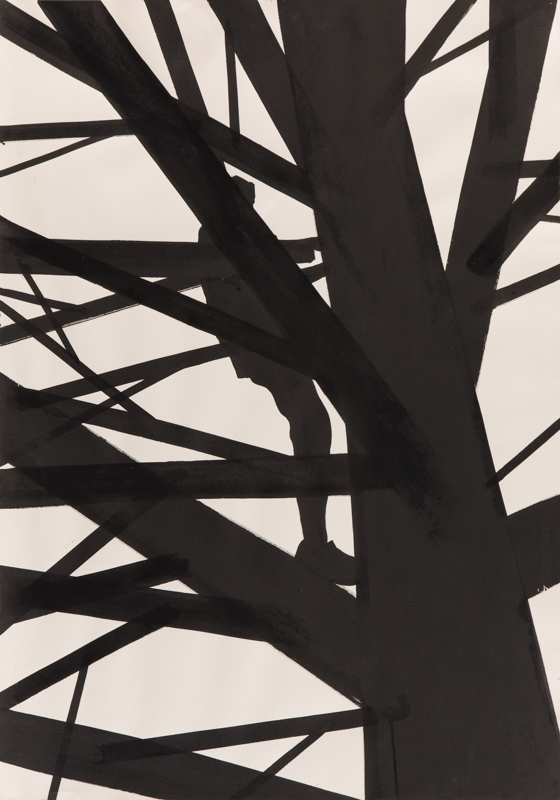 2.Rafał Bujnowski - Człowiek na drzewie 5 2016 r. tusz/papier, 100 x 70 cm sygnowany i datowany na odwrociu: 'Bujnowski / 2016' cena wywoławcza: 6 000 zł estymacja: 7 000 – 15 000 zł