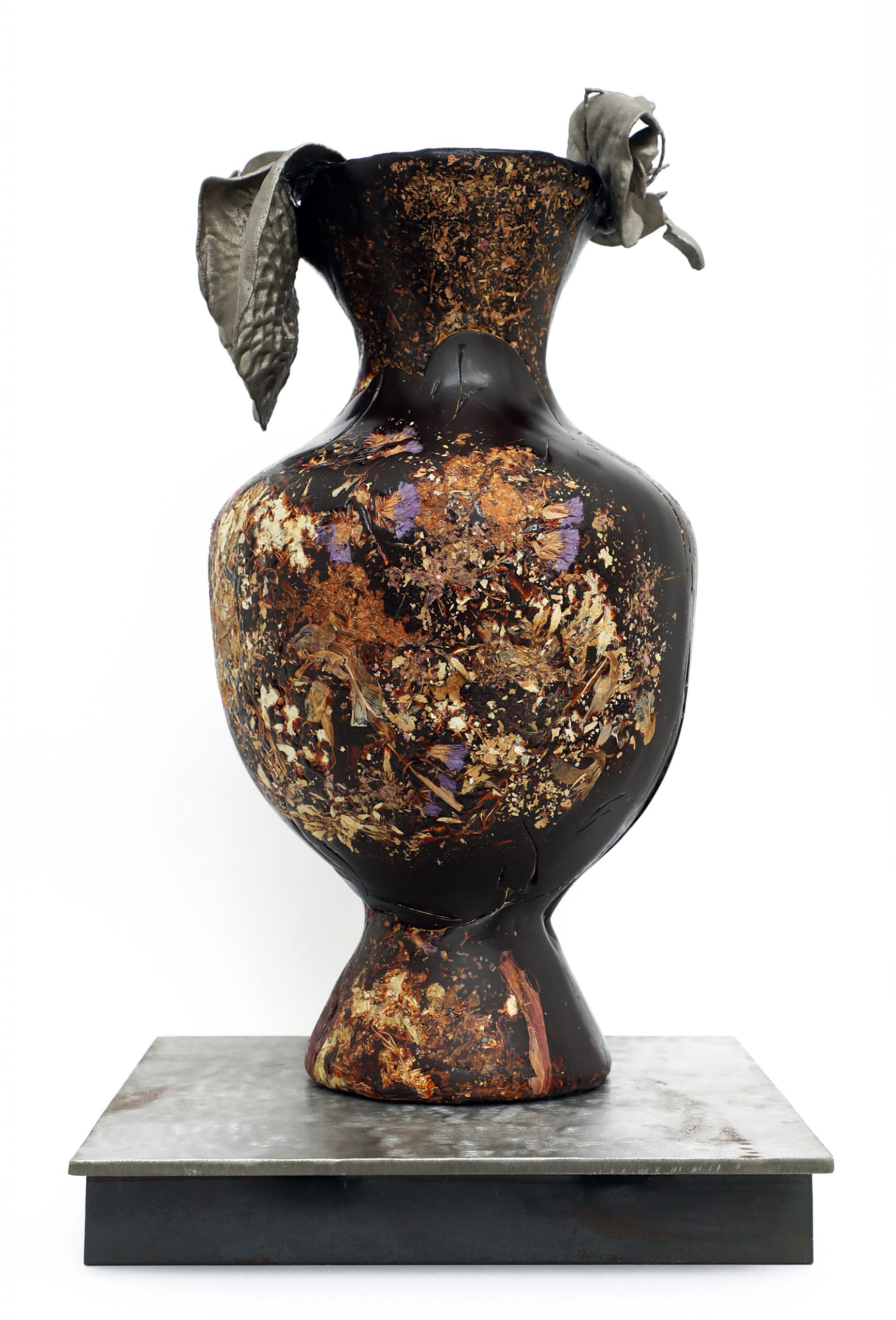 27.Marcin Rusak - Perishable Vase III 2016 r. przetworzone odpady z kwiatów, szelak, żywica drzewna, mąka, wosk pszczeli, stal, nikiel, brąz, 40 x 22 x 22 cm cena wywoławcza: 18 000 zł estymacja: 25 000 – 35 000 zł